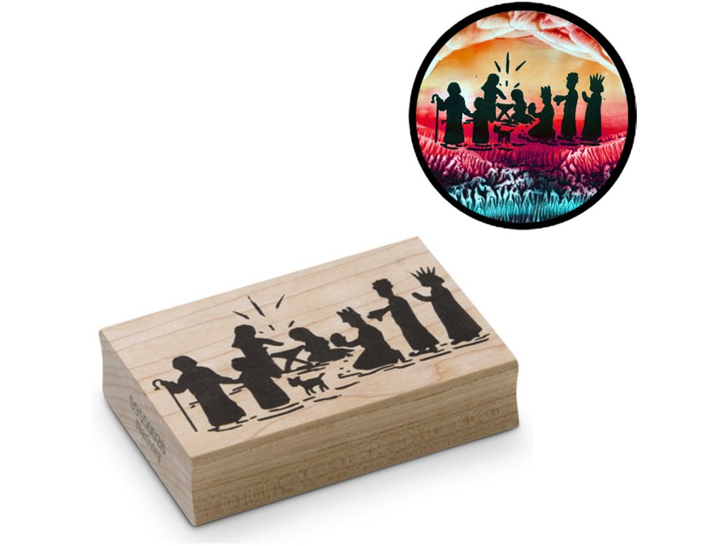 Enkaustická pečiatka NARODENIE JEZIŠKA - ideálny vianočný obrázok. Najlepšie vynikne na pozadí s nádychom žltej, tmavšie farby po stranách pomôžu zvýšiť účinok.