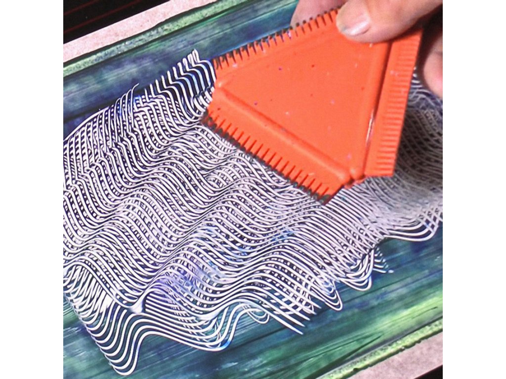 Gumový enkaustický hrebeň sa používa na vytváranie vzorov na varnej doske alebo pre prácu s teplovzdušnou pištoľou.